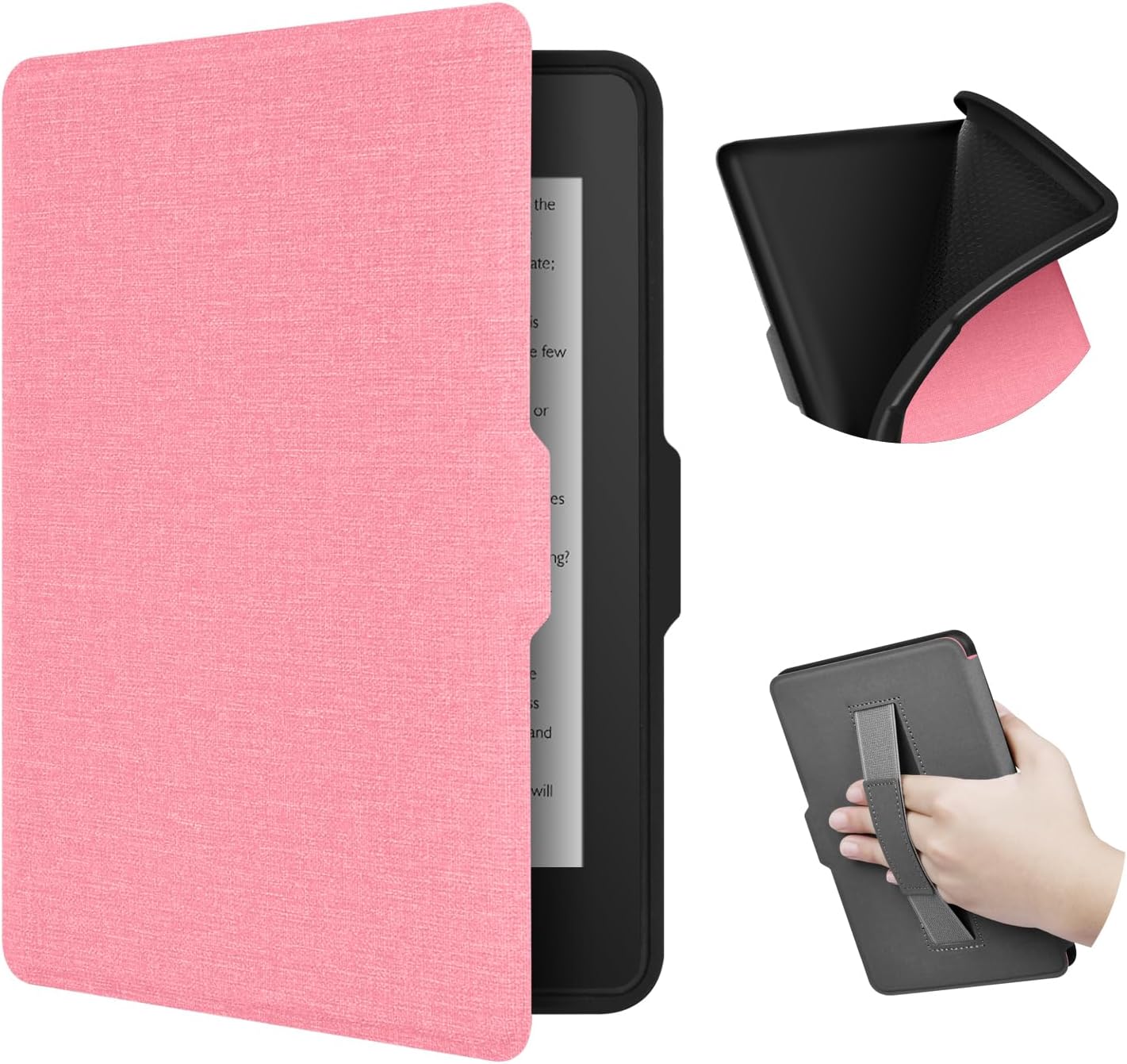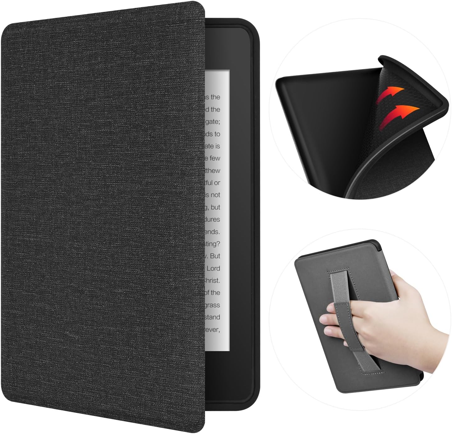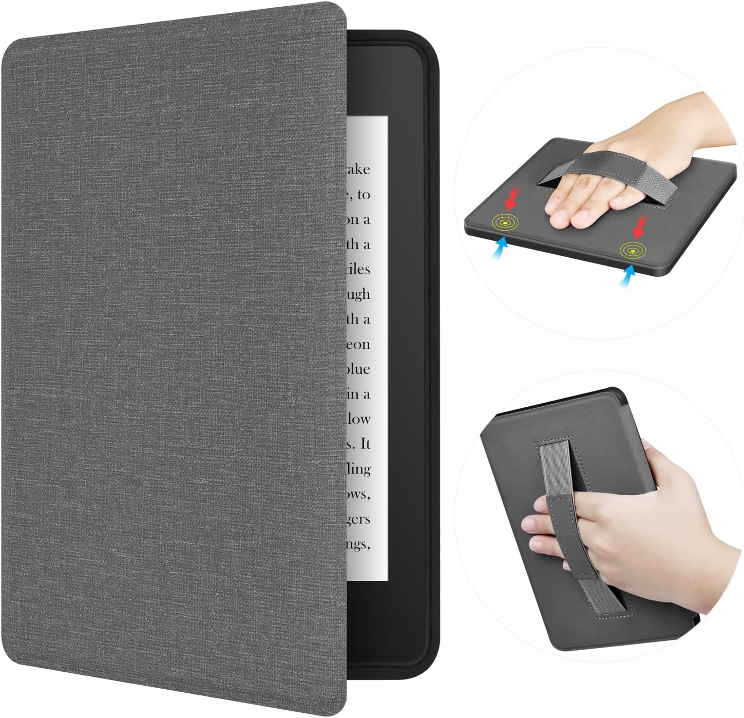 This ERUNTO case is crafted to fit the 7-inch 12th Kindle Paperwhite, its Signature Edition, and the Kindle Colorsoft. The TPU cover is designed with a cloth texture, enhancing both the visual appeal and the grip. It comes with a handy hand belt, allowing for more comfortable and secure handling while reading. The double-sided magnetic shell is a remarkable feature. It enables the Kindle to wake up automatically when the case is opened and enter sleep mode when it's closed, which is not only convenient but also helps to conserve battery power. This case is a practical and stylish accessory that offers comprehensive protection and enhanced functionality for the Kindle devices.