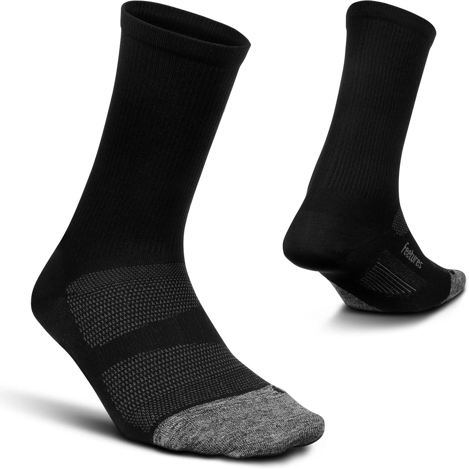 Feetures Elite socks are engineered with an enhanced fit and feel. If you're looking for the best performance sock on the planet, our Elite socks have it all. They feature Targeted Compression, which is zone-specific compression where you need it most for superior comfort and support. As a result, they have an anatomical design, meaning they conform to the left and right structures of the foot. This design provides a custom-like fit and reduced risk of blisters. Plus, our Ultra Light Cushion is our thinnest cushion option that provides a lighter, cooler feel. These mini crew socks rest just below mid-calf, perfect for casual or dress attire.Dedicated to helping people achieve their personal best and pursue an active lifestyle, Feetures designs high-quality socks that provide comfort and support recovery. Our promise to our customers is to deliver fit, feel, and durability to ensure they have the highest quality product to support them. Feetures socks deliver this promise with a custom-like fit, anatomical design, targeted compression, seamless toe, and more features specific to our different sock lines. We strive to innovate in our category and create products that are made to last to ensure we deliver value to our customers.