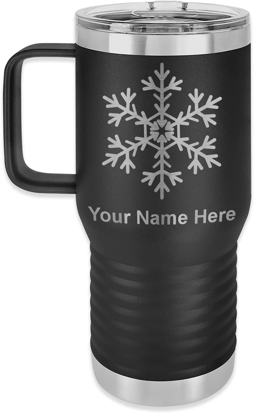 LaserGram 40 ounce Travel Mug with Handle that is laser engraved with the image that you see in the photo. Your own personalized text will be laser engraved below the image. Features double-walled stainless steel vacuum insulation with a clear lid. Click the "Customize Now" button to begin customizing your mug.