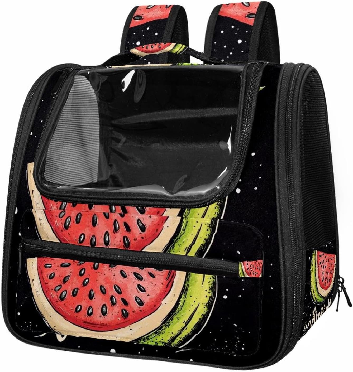 Well made: Cat Backpack Carrier is made from 900D oxford fabric, pp webbing, velvet, nylon, which is very sturdy, environmentally friendly and breathable. Not easily scratched by pet’s claws, pet backpack carrier is SAFETY & ANTI-SCRATCH. The back padding will give you a comfortable and breathable experience. Ventilated Backpack: With a breathable window in the front, this pet backpack allows cats to enjoy the sun without feeling stuffy. There are two side pockets and one big front pocket, and you can take foods or toy for your kitten pet. It is big enough for cat to turn around, and there are side pockets and hook holes, you will enjoy the greatest convenience when taking your cat out. Perfect size: Cat carrier is 15.75x9.84x13.78in/40x25x35cm. Fits most small/medium sized cat, dog, and pet. Quality fleece bed provide a comfortable place for your pet. Lightweight and easy to carry to all places. Built-in harnesses keep your naughty friends from escaping. Removable cosy mat for easier cleaning and let your pet enjoy it inside. Easy to carry: The adjustable shoulder strap of pet carrier bag help you hands-free carrying and makes it the most safe and convenient pet carrier bag for your travel. Seat belt design provide pets with safety protection throughout the trip. Pad protection keep your pets comfortable during travel. Unique Design: Innovative inside graphic design gives you a stereoscopic 3D visual experience. You also send us the photos you interest to make your unique dog or cat carrier. Pet bag is also a amazing gift for pet lover.